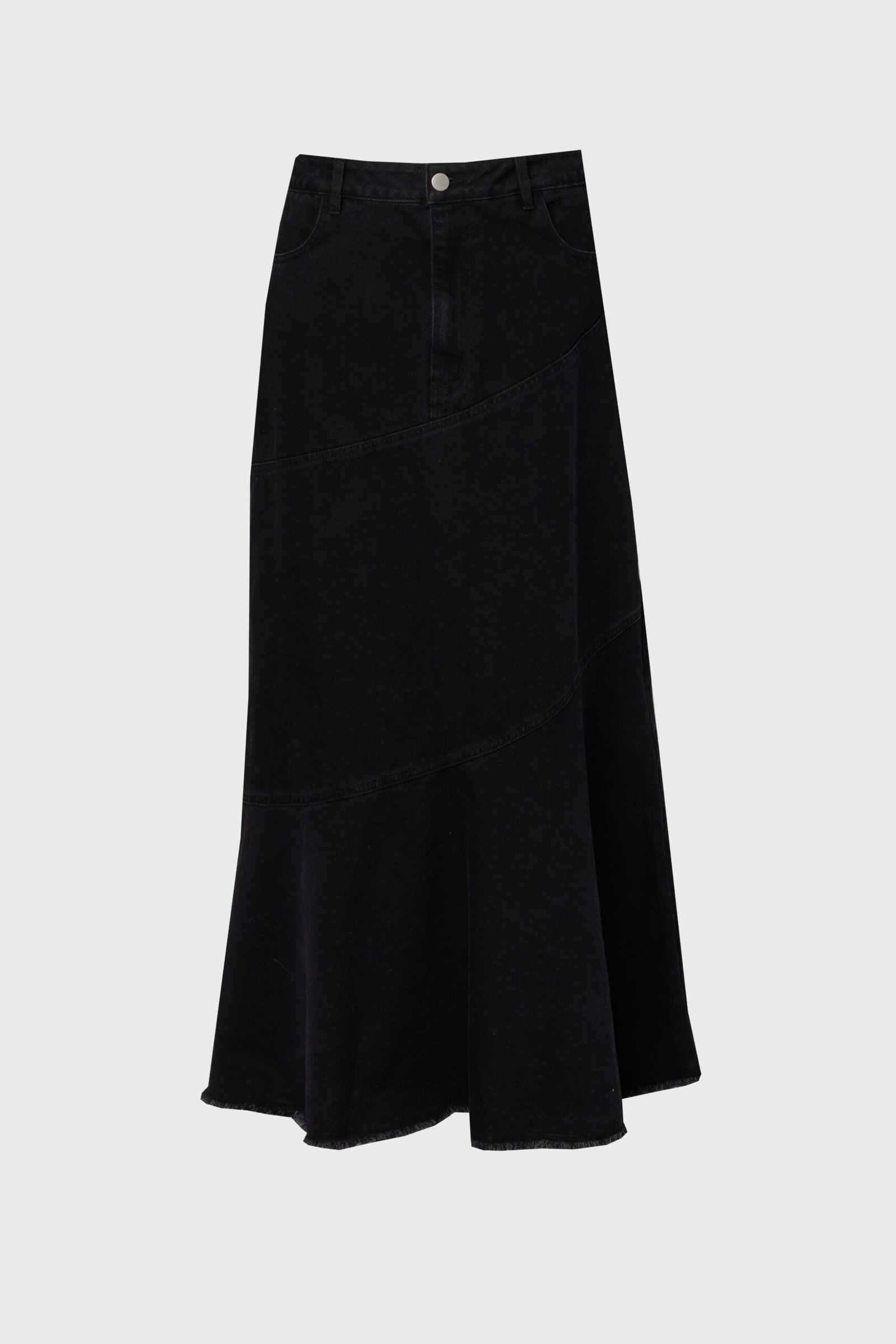 Black Fringe Tiered Denim Skirt