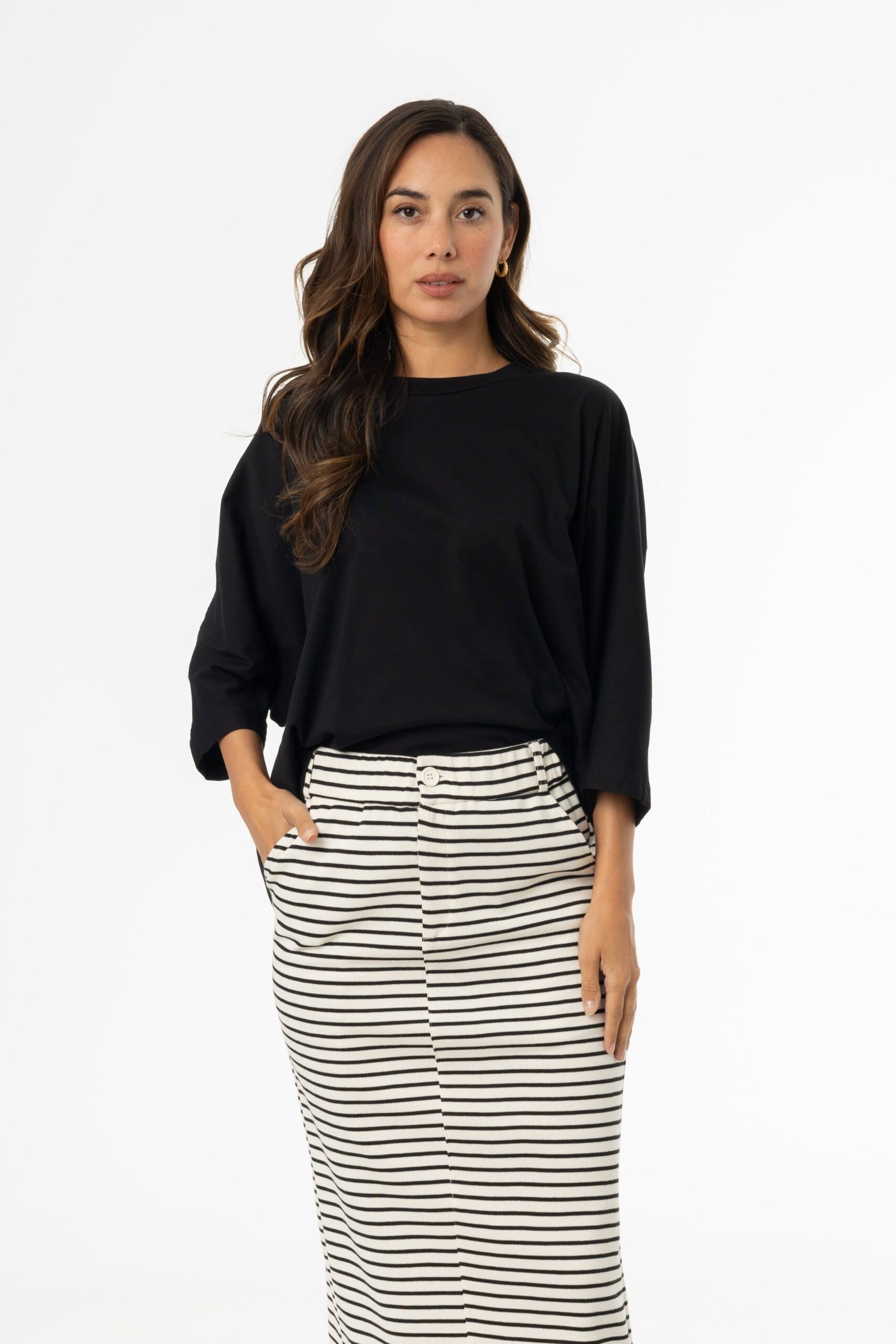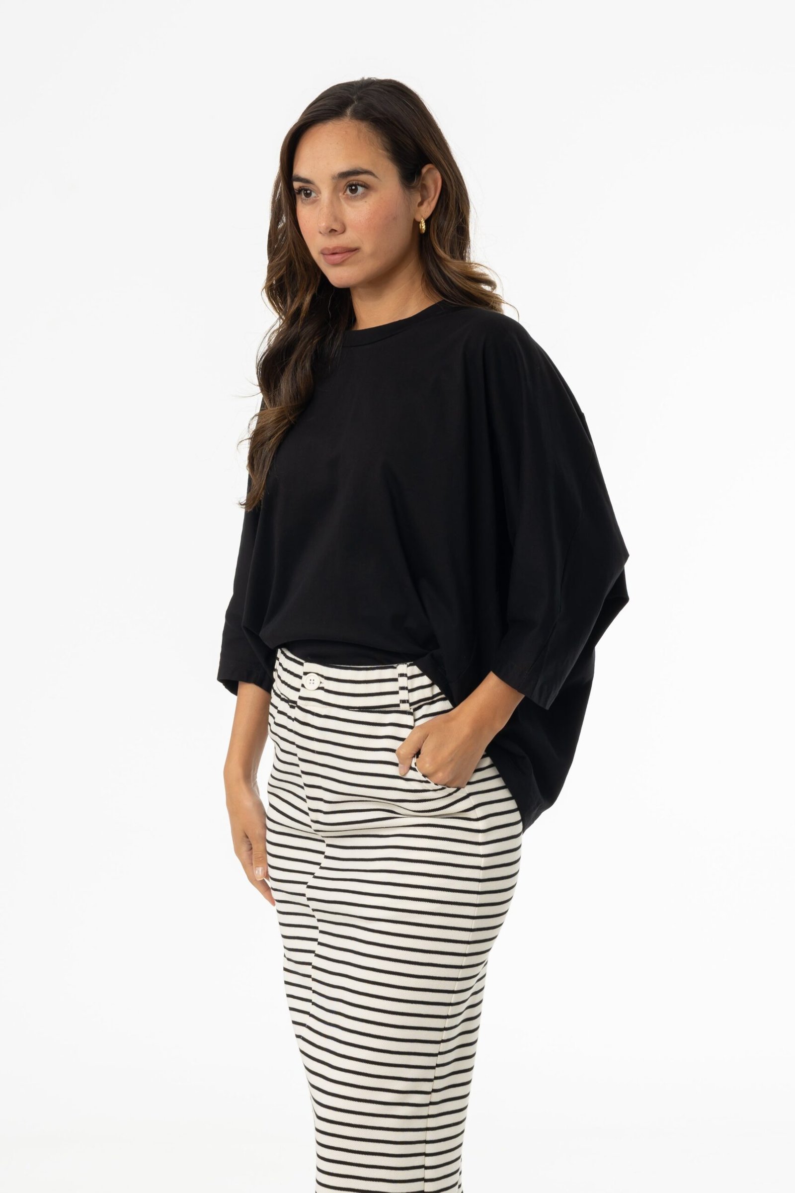 Easygoing but never boring—there’s a reason this oversized dolman tee is a fan favorite! With its perfect blend of comfort and style. it’s the piece you’ll keep reaching for. Tuck it into a pencil skirt with sneakers for a laid-back edge. or layer it over a slip dress for an unexpected twist. However you style it. this tee knows how to make a statement.