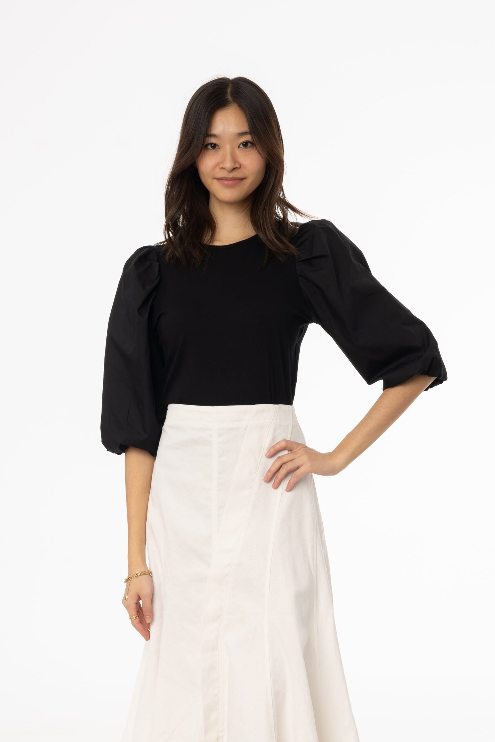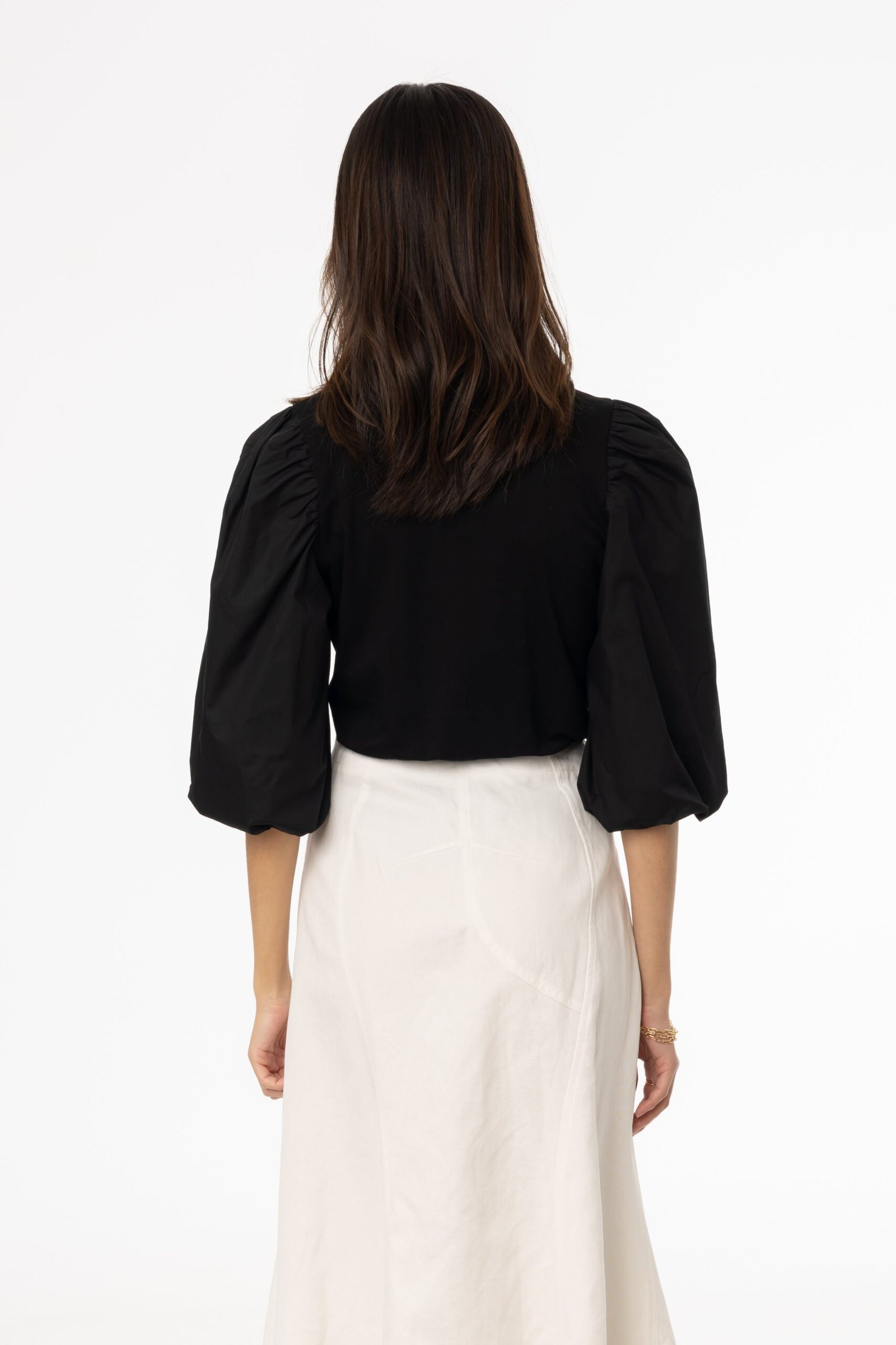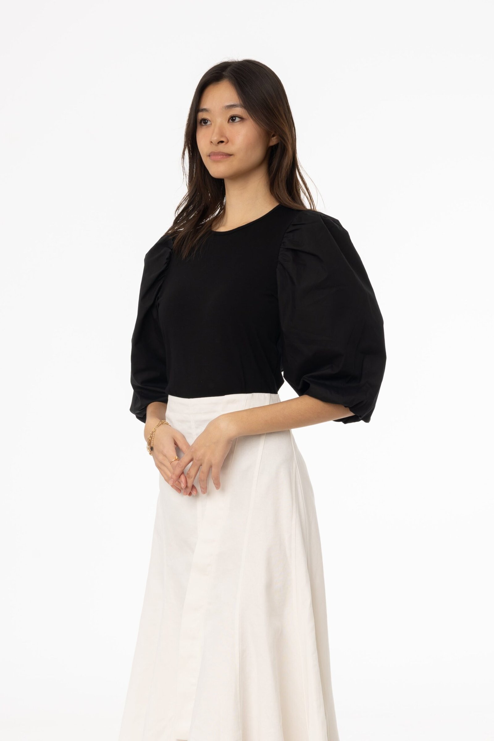 Be the first to review “Black Puff Sleeve Mixed Fabric Tee”