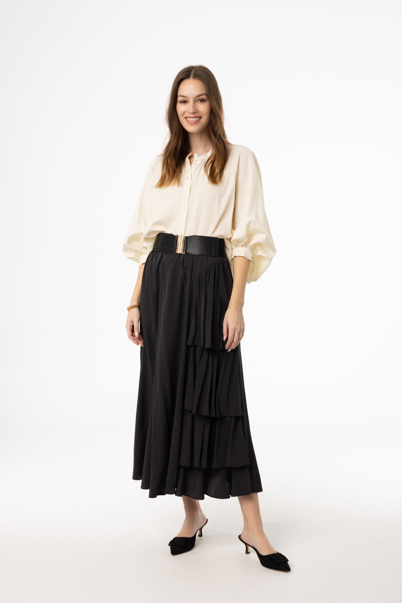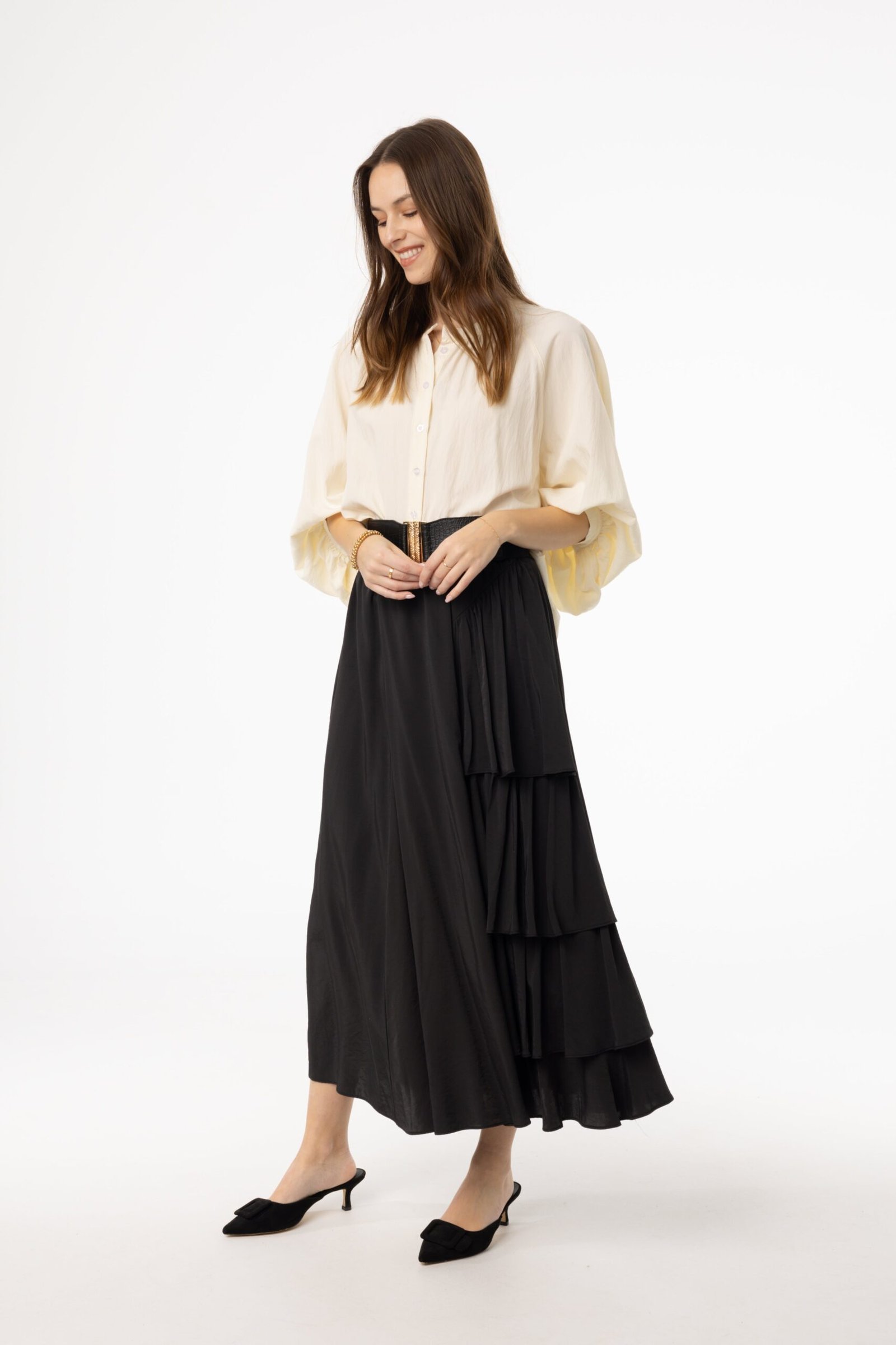Pair it with a fitted blouse or tucked-in shirt. and finish with your favorite heels or flats for a day of art. culture. and effortless fashion.