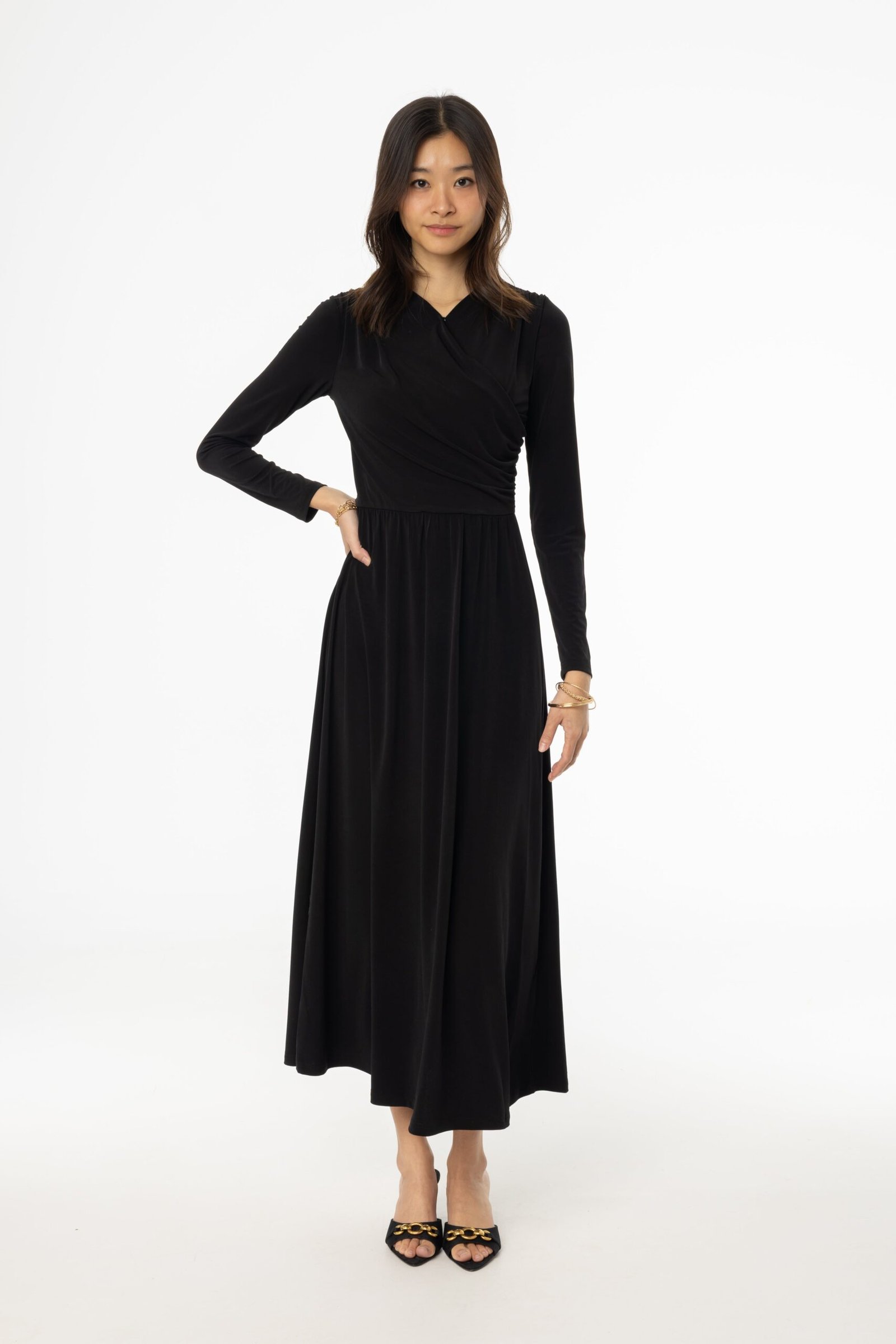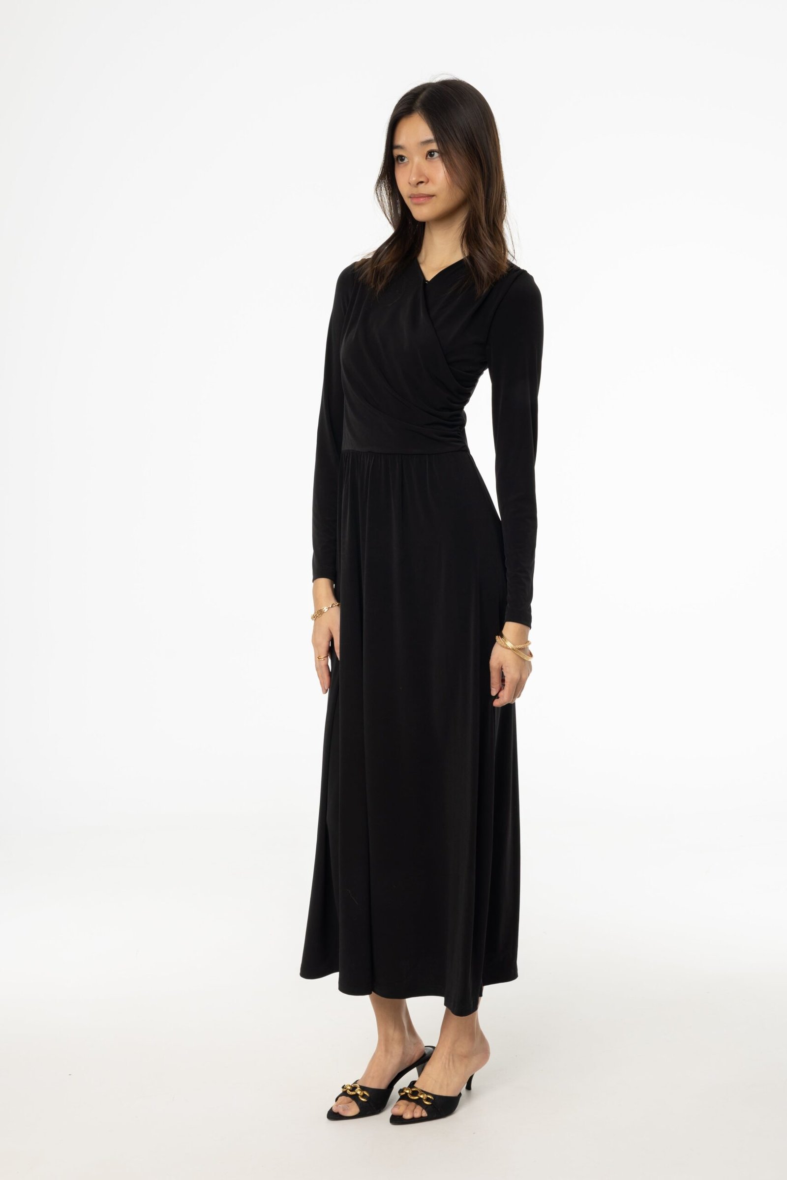 Be the first to review “Black Slinky Faux Wrap Maxi Dress”