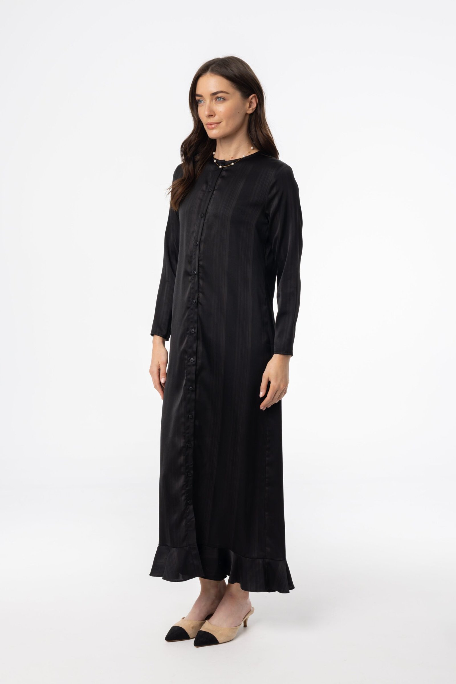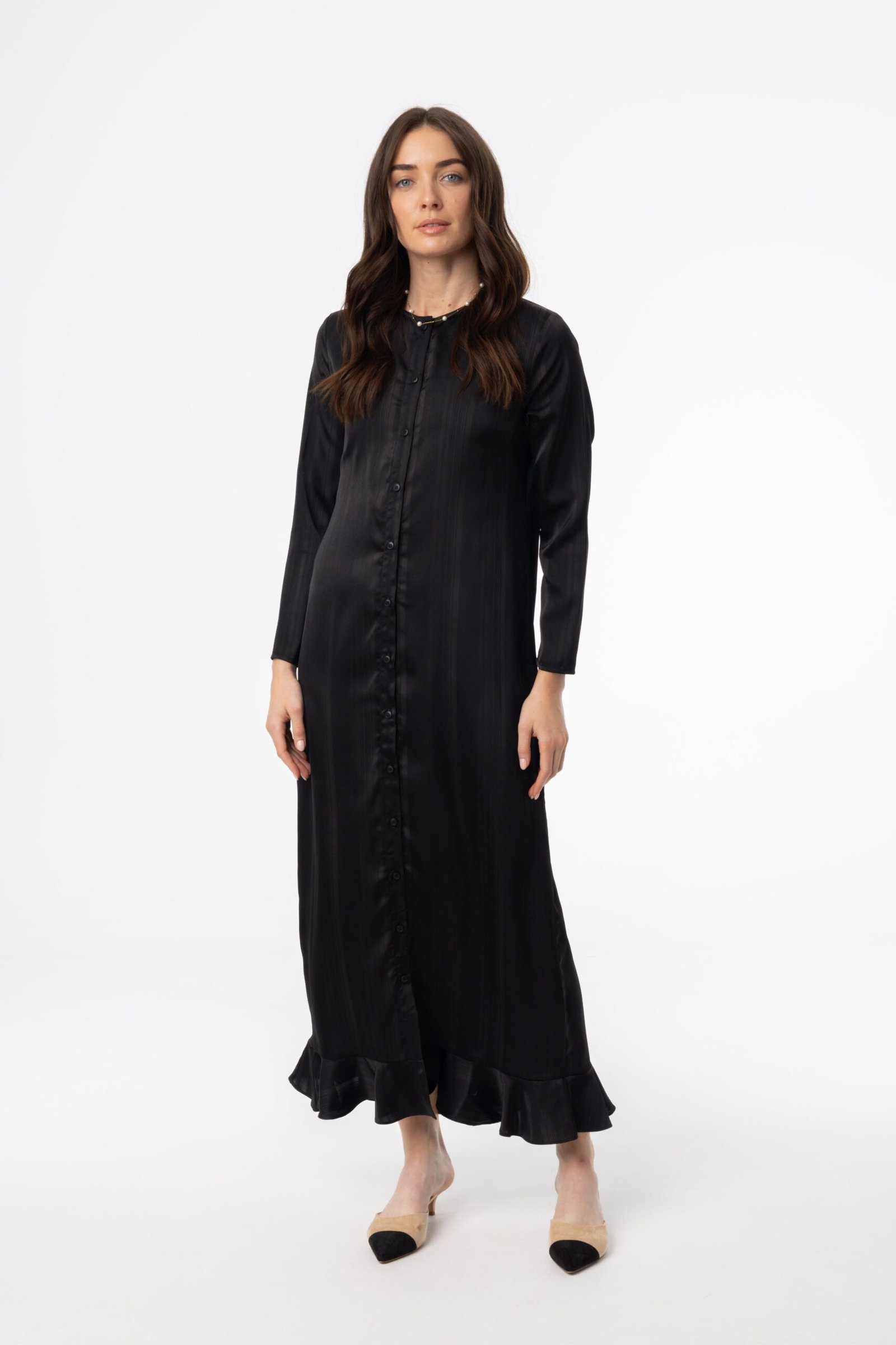 Indulge in effortless luxury with this button-down maxi. The fabric gently drapes over your body. creating a flattering silhouette. while the button-down design adds a polished. timeless element.