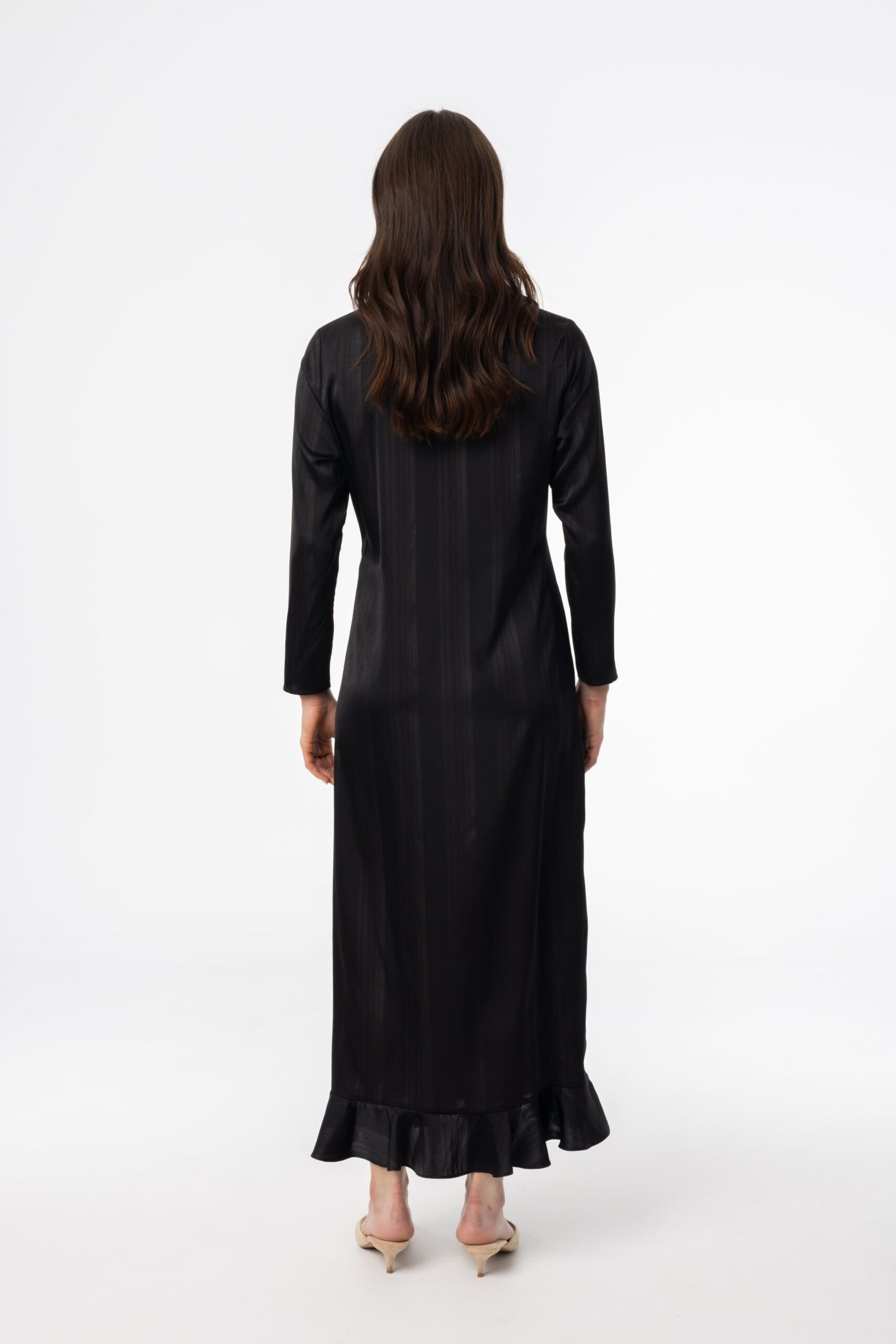The sleek stripes bring a modern twist. making it perfect for soirées. formal gatherings. or upscale events. Style it with casual flats or dress it up with heels for an elegant evening look.